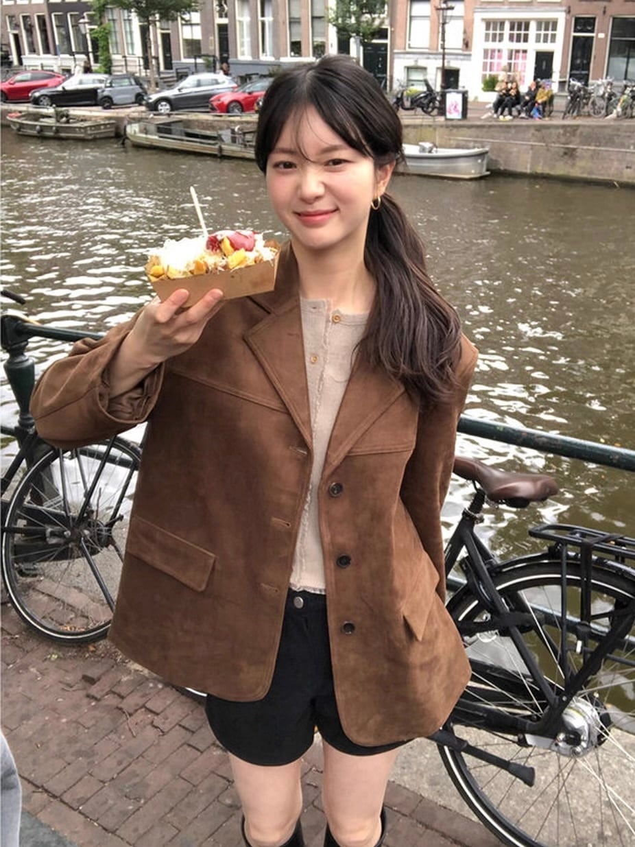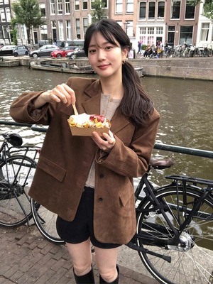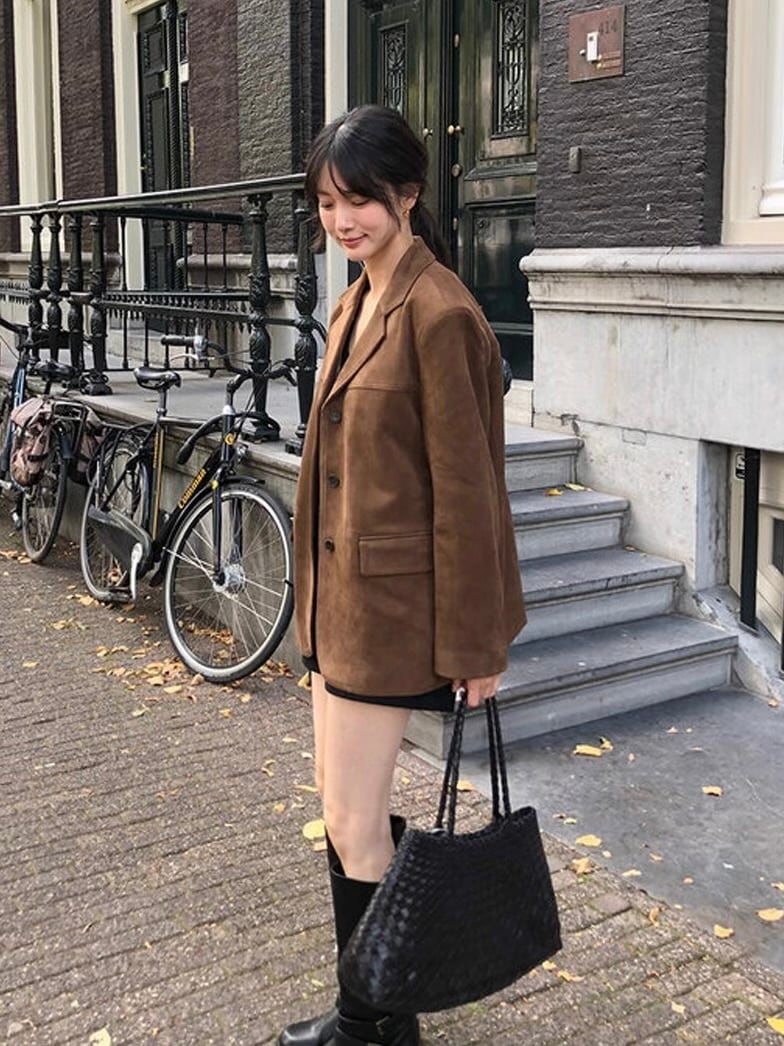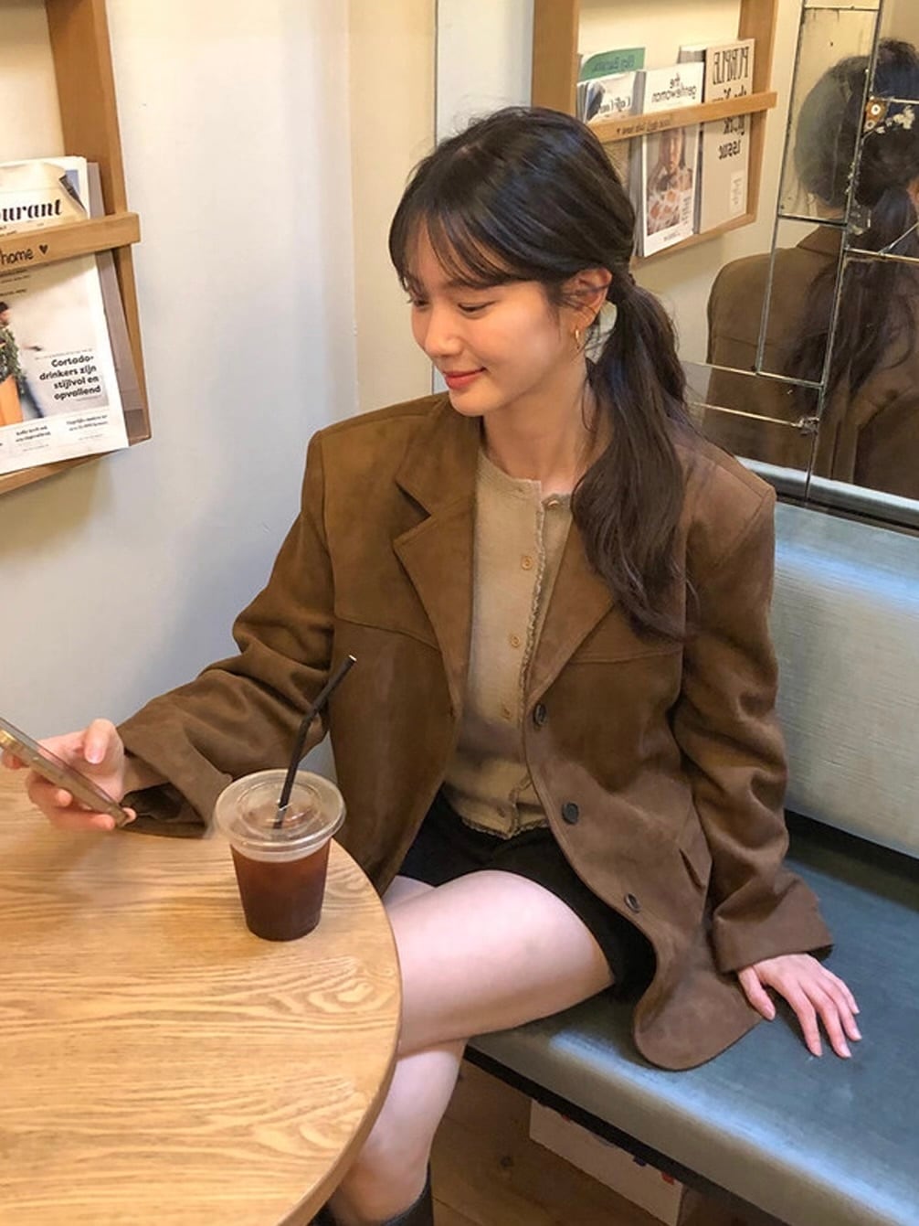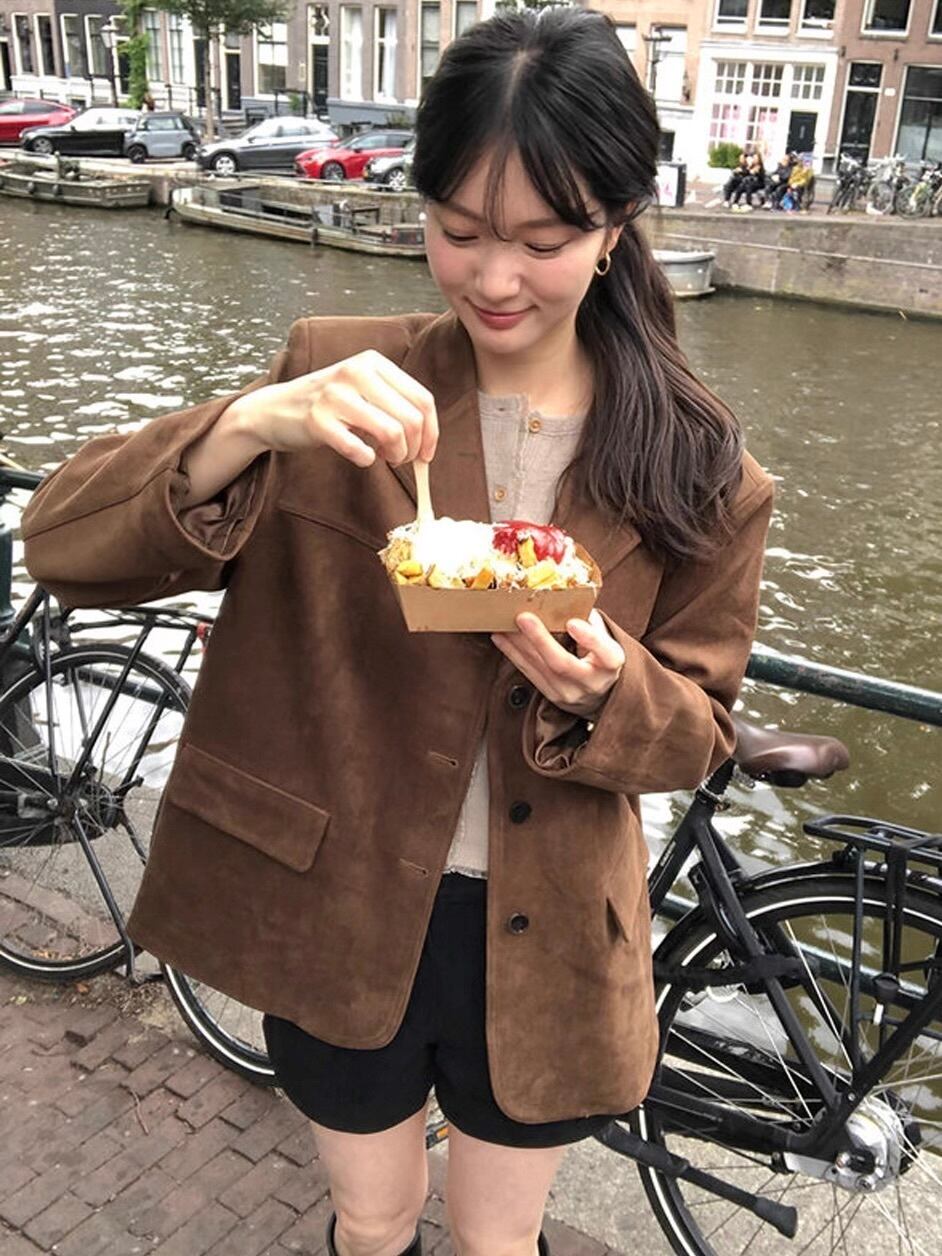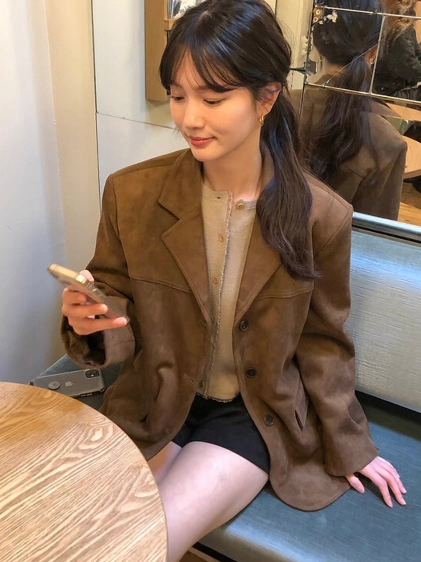 カフェ時間も絵になる、韓国ムード漂うジャケット。