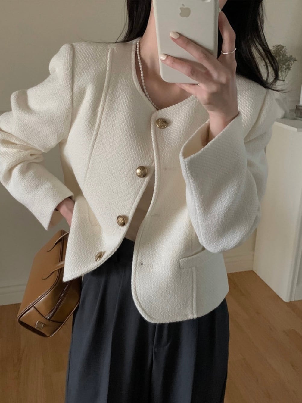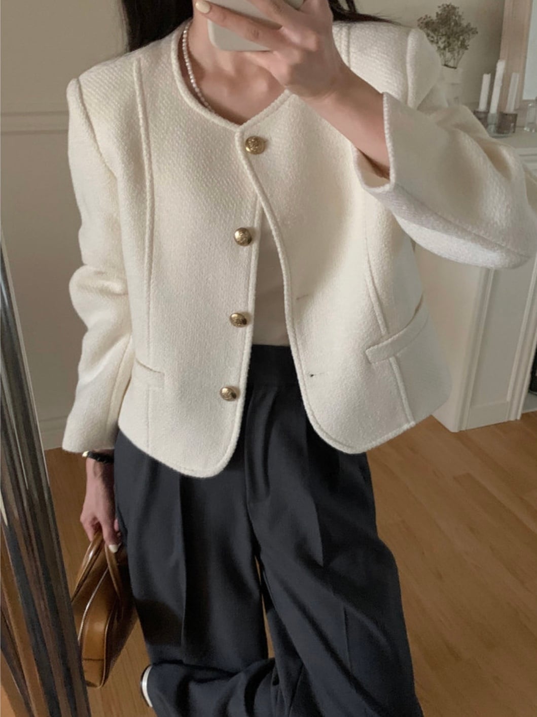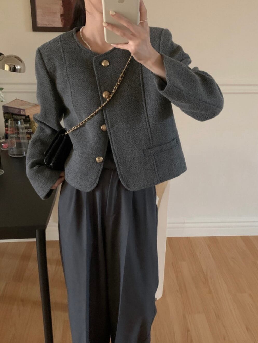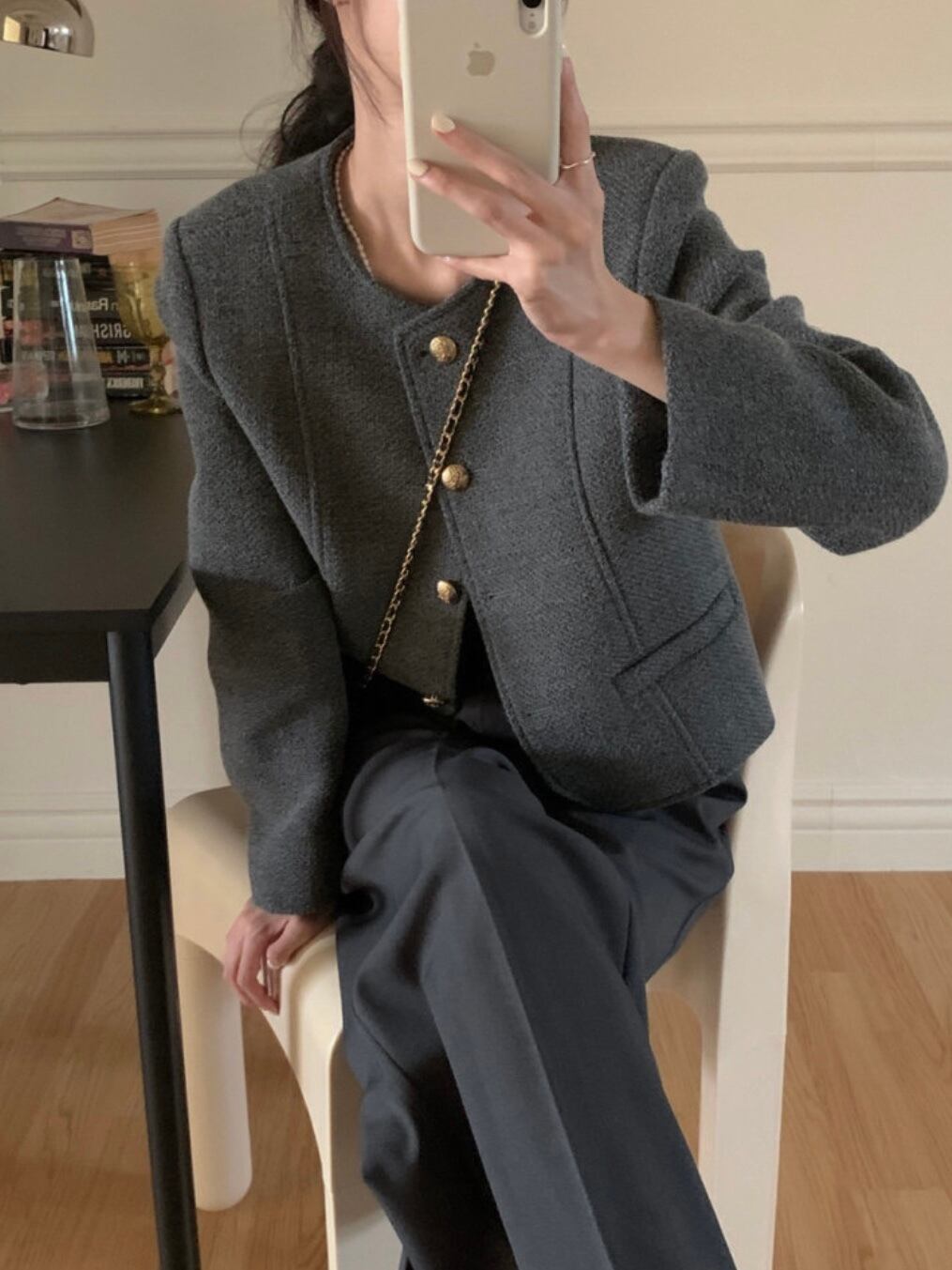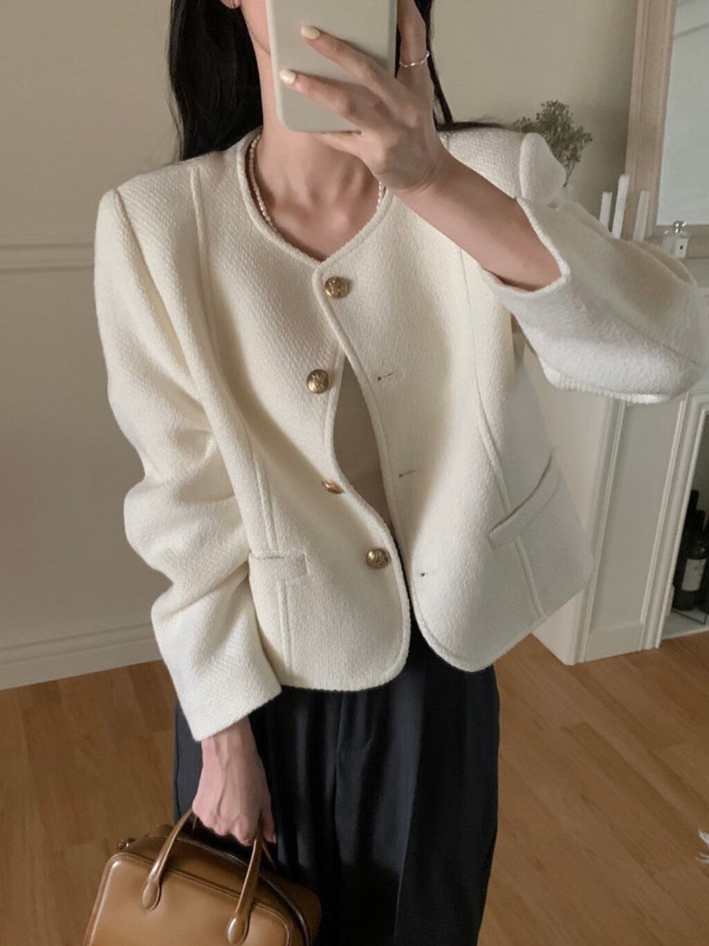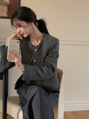 ゴールドボタンノーカラージャケット.1354